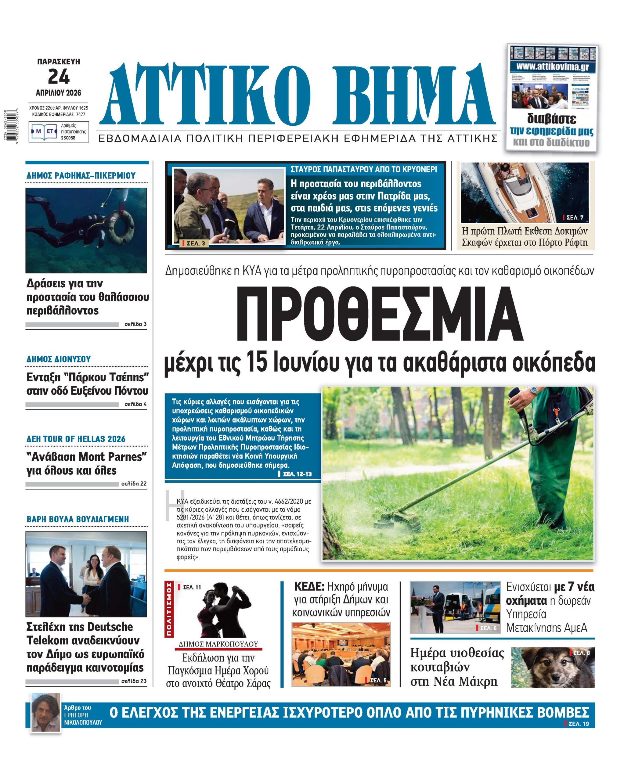 Η προστασία του περιβάλλοντος είναι χρέος μας στην Πατρίδα μας, στα παιδιά μας, στις επόμενες γενιές