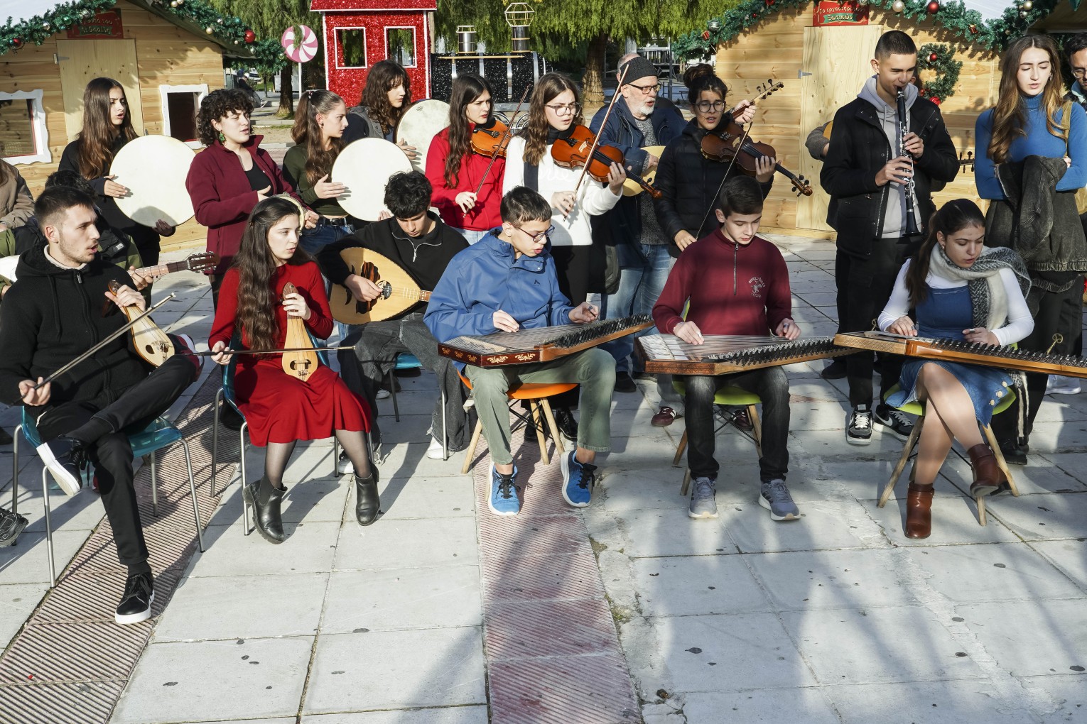 ι μαθητές, συνοδευόμενοι από τον Διευθυντή του σχολείου κ. Αλέξανδρο Γαλανόπουλο και τους καθηγητές μουσικής τους, συναντήθηκαν με το Δήμαρχο στην Πλατεία Μακεδονίας, όπου αντάλλαξαν θερμές ευχές ενόψει των εορτών. Με τη συνοδεία μουσικών οργάνων, οι μαθητές χάρισαν σε κατοίκους και επισκέπτες μια ξεχωριστή εορταστική εμπειρία, γεμάτη παραδοσιακούς και χαρμόσυνους ήχους.