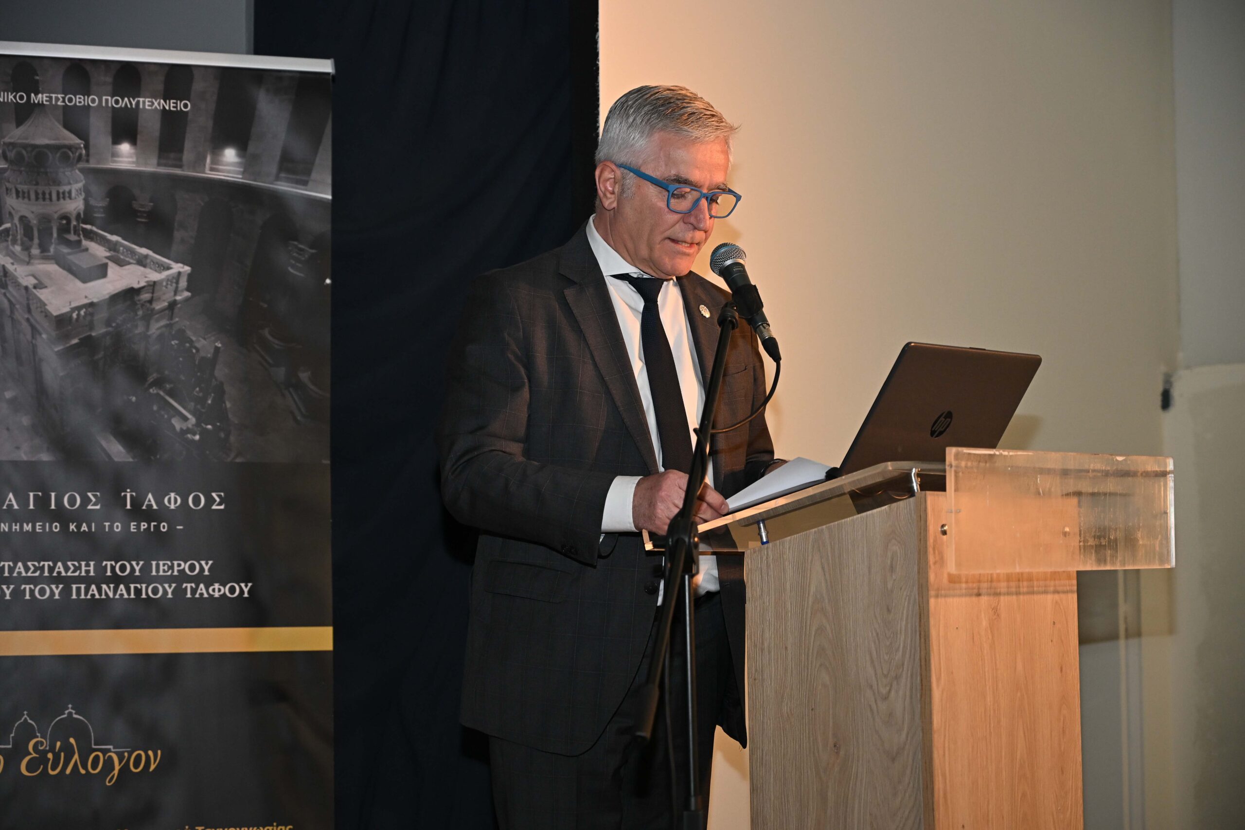 Ο Δήμαρχος Παιανίας Ισίδωρος Μάδης στον σύντομο χαιρετισμό του τόνισε τη σημασία του Παναγίου Τάφου ως αιώνιο σύμβολο της πίστης σημειώνοντας πως «εκεί τάφηκε ο Ιησούς Χριστός. Εκεί αναστήθηκε, επιτρέποντάς μας να ελπίσουμε στο θαύμα». «Το γεγονός πως έχει γίνει αντικείμενο διαμάχης πολλάκις δείχνει την ιδιαίτερη αξία που έχει στη συνείδηση των πιστών παγκοσμίως, όχι μόνο των Χριστιανών. Όταν η Ιερουσαλήμ πέρασε στην Ισλαμική κυριαρχία, παρέμεινε χριστιανική εκκλησία. Εκατοντάδες θρύλοι μιλούν για τα ζωντανά στοιχεία του μόνου κενού τάφου, του τάφου που δεν παίρνει τη ζωή, αντίθετα τη δίνει» συνέχισε τονίζοντας την αξία του έργου του ΕΜΠ που «απέτρεψε την καταστροφή του στις μέρες μας και τον παρέδωσε στις επόμενες γενιές ως σημείο αναφοράς της πίστης μας, αλλά και της ιστορίας».