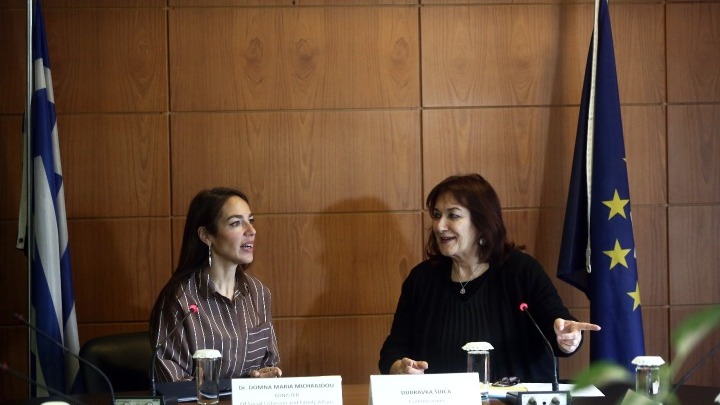 Συνάντηση εργασίας είχε σήμερα η υπουργός Κοινωνικής Συνοχής και Οικογένειας Δόμνα Μιχαηλίδου με την Ευρωπαία επίτροπο για τη Μεσόγειο, Dubravka Šuica, αρμόδια για θέματα δημογραφικού. Η συνάντηση πραγματοποιήθηκε σε συνέχεια της συνάντησης της επιτρόπου με τον πρωθυπουργό Κυριάκο Μητσοτάκη.