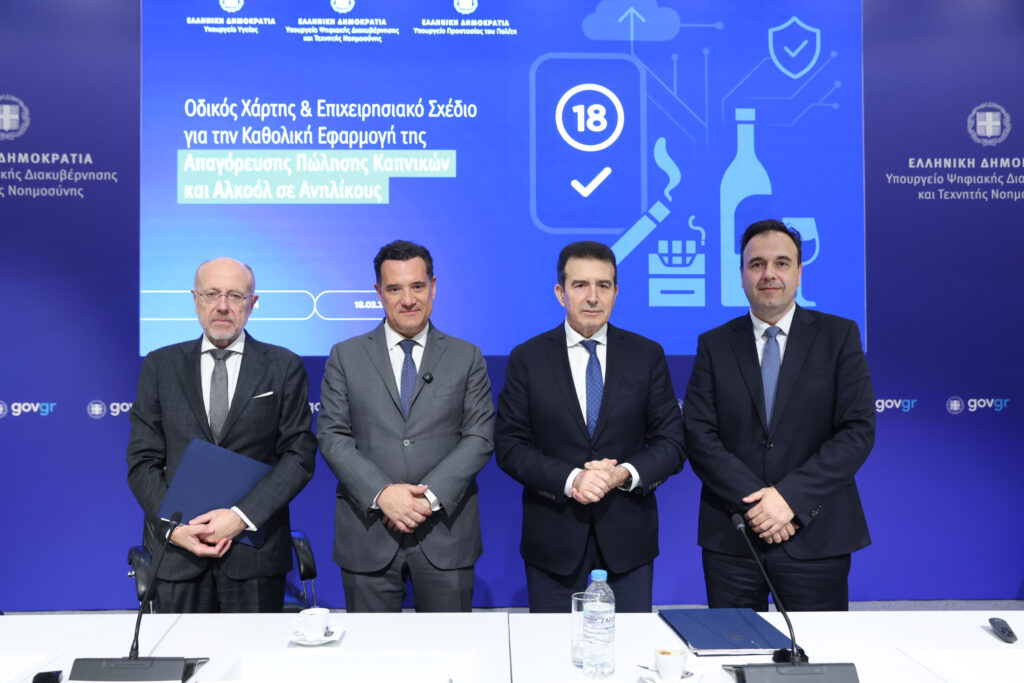 τη συνέντευξη Τύπου που διοργάνωσαν τα υπουργεία Ψηφιακής Διακυβέρνησης, Υγείας και Προστασίας του Πολίτη παρουσιάστηκε ο «Οδικός Χάρτης και Επιχειρησιακό Σχέδιο για την Καθολική Εφαρμογή της Απαγόρευσης Πώλησης Καπνικών και Αλκοόλ σε Ανήλικους», ένα πλέγμα παρεμβάσεων που συνδυάζει νομοθεσία, τεχνολογία και εντατικούς ελέγχους.