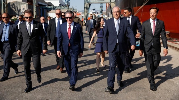 Ο κ. Θεοδωρικάκος – στην συνάντησή του με τον κ. Μπέργκαμ στην οποία ήταν παρούσα και η γενική γραμματέας Ιδιωτικών Επενδύσεων, Στελλίνα Σιαράπη – ανέδειξε τη στρατηγικού χαρακτήρα συνεργασία με την κρατική αμερικανική αναπτυξιακή τράπεζα DFC, που επένδυσε 125 εκατ. ευρώ στα Ναυπηγεία Ελευσίνας.
