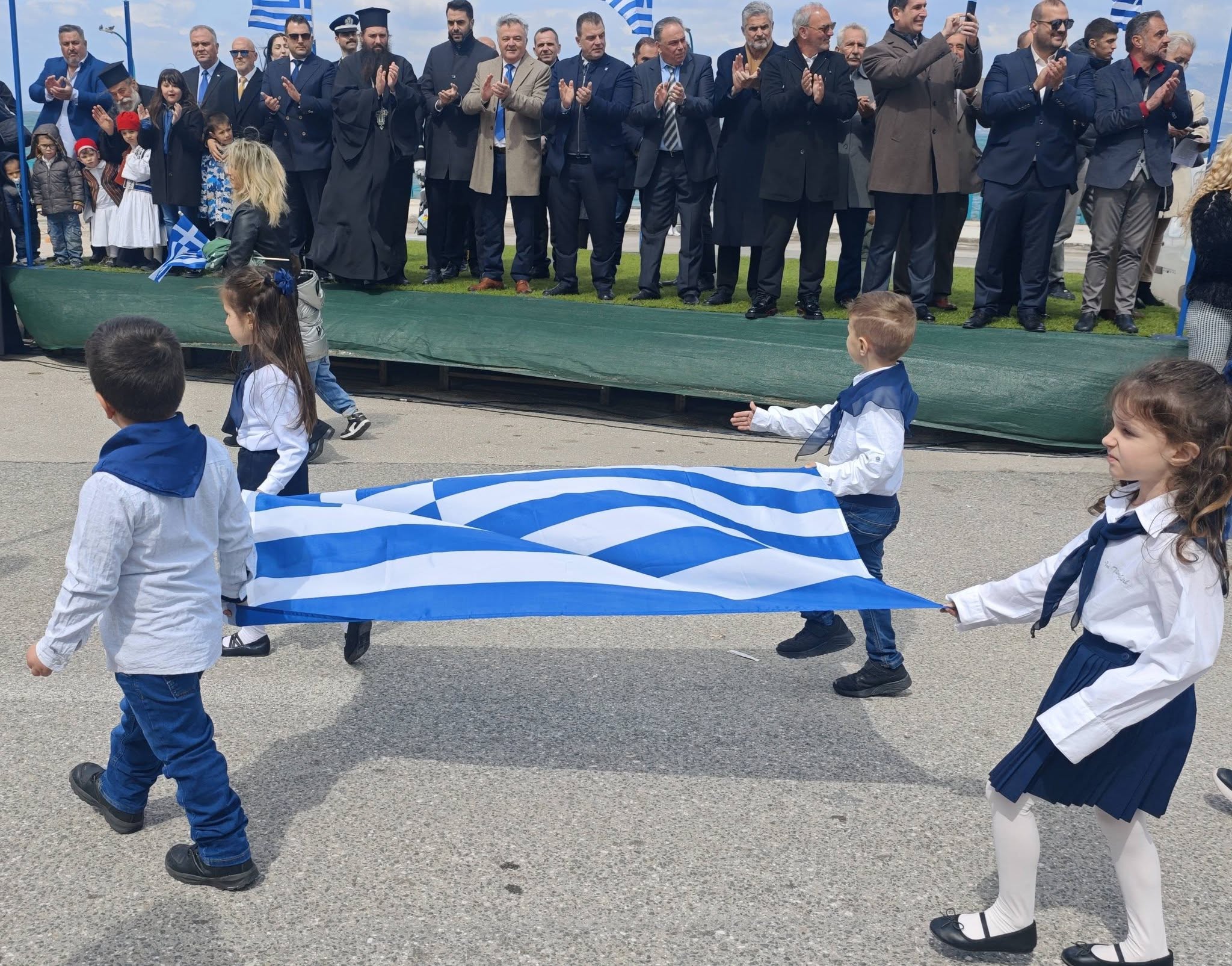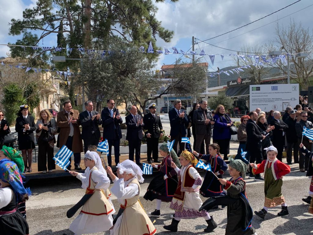 Τα συγχαρητήρια δόθηκαν παρουσία της σύσσωμης Δημοτικής Αρχής, εκπροσώπων συλλόγων, ομάδων και πλήθους κόσμου που τίμησε με την παρουσία του τη μεγάλη αυτή ημέρα για την πατρίδα και τη Χριστιανοσύνη.