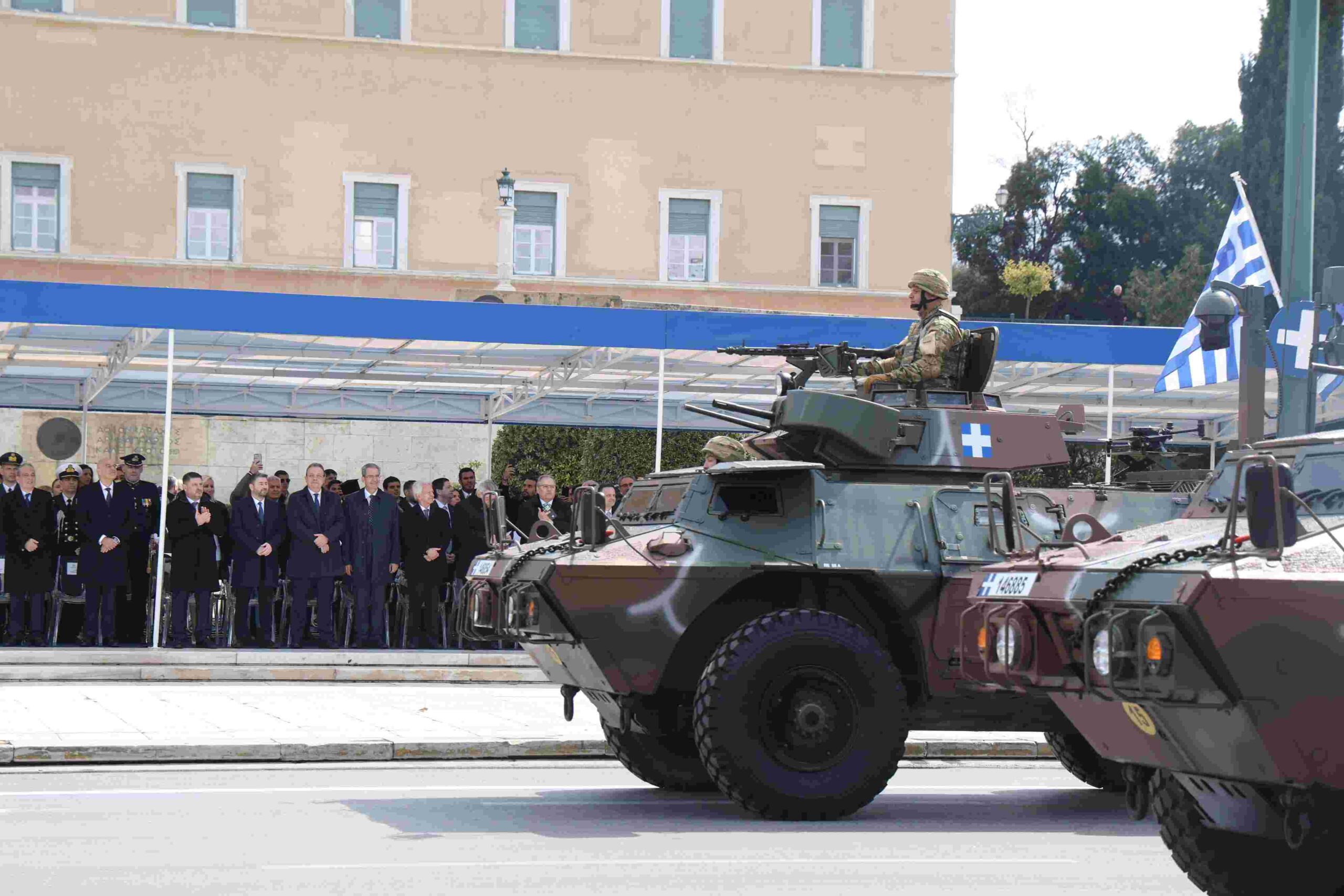 Αμέσως μετά, ο κ. Χαρδαλιάς μετέβη στην πλατεία Συντάγματος, προκειμένου να παρακολουθήσει την καθιερωμένη στρατιωτική παρέλαση, ενώ προηγήθηκε η κατάθεση στεφάνου από τον Πρόεδρο της Δημοκρατίας Κωνσταντίνο Τασούλα στο Μνημείο του Άγνωστου Στρατιώτη.